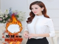 加絨蕾絲衫女長袖2015秋裝新款女裝上衣秋冬中長款加厚高領(lǐng)打底衫 /