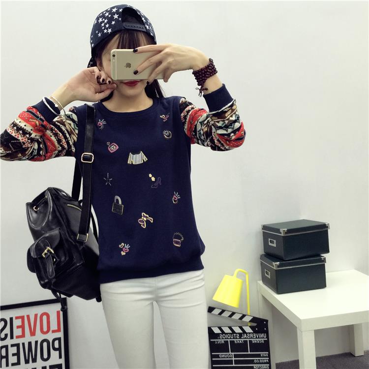 2015秋冬裝長袖t恤女韓版套頭寬松加絨加厚打底衫學(xué)生裝衛(wèi)衣批發(fā) /