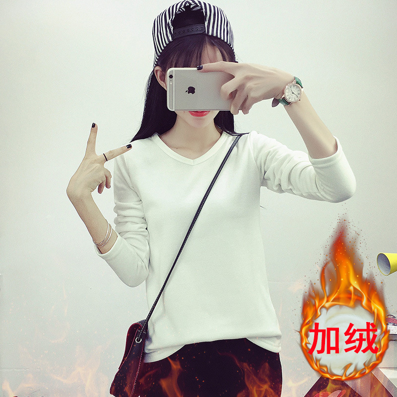 加絨加厚2015秋冬季新款韓版女式打底衫長袖不倒絨純色T恤批發(fā) /