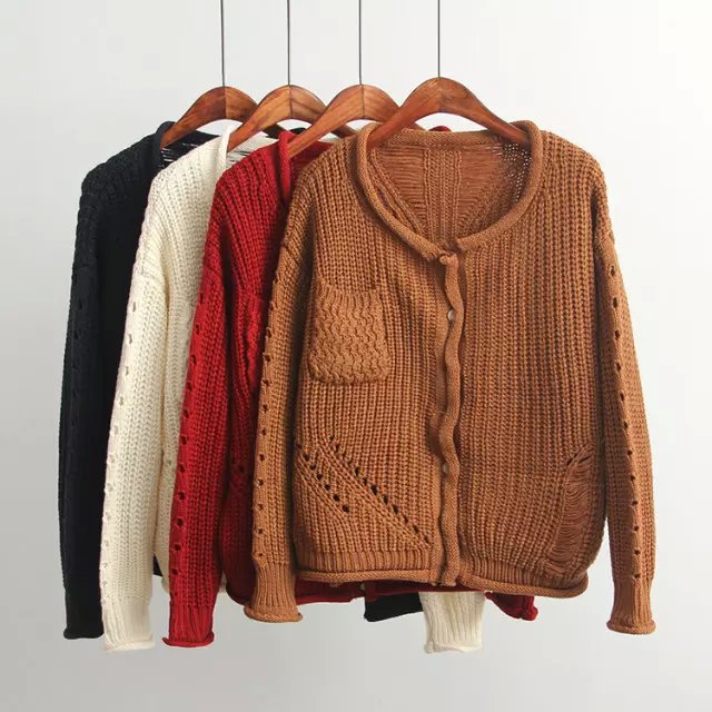 供應(yīng)現(xiàn)貨2015秋裝韓版新款寬松短款鏤空純色毛衫開衫女Y4322 /