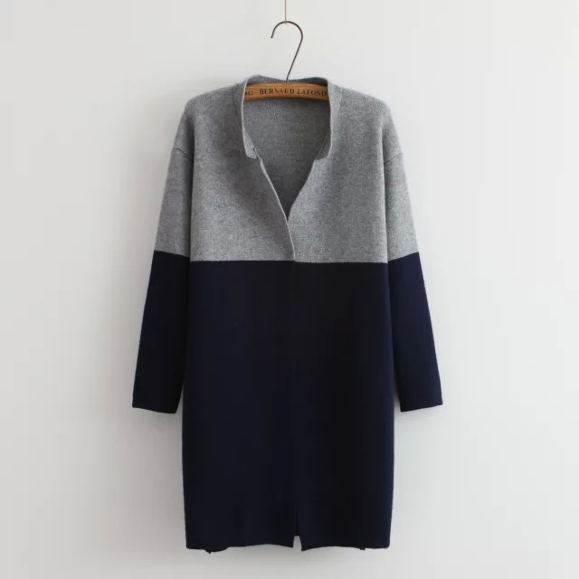 2015秋冬韓國新款氣質(zhì)立領(lǐng)拼色中長(zhǎng)款女式針織毛衣開衫外套Y4040 /