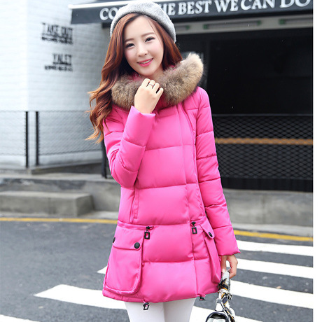 2015冬季新款棉衣女韓版寬松大碼加厚保暖毛領(lǐng)中長款羽絨服 /