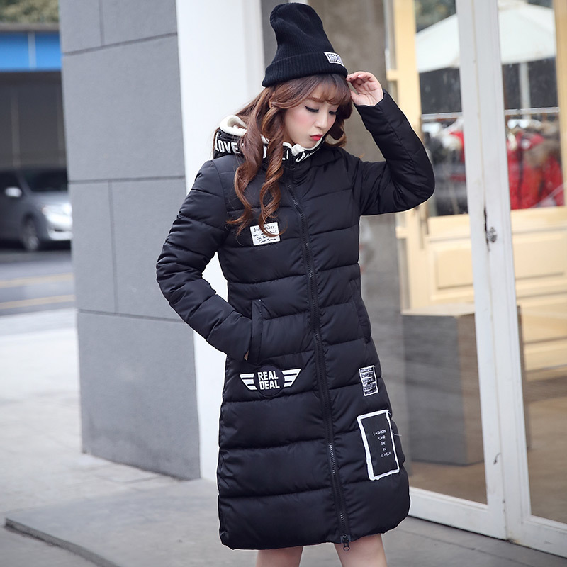 韓版少女冬裝新款修身棉衣中長款顯瘦外套時尚過膝加厚棉服直銷 /
