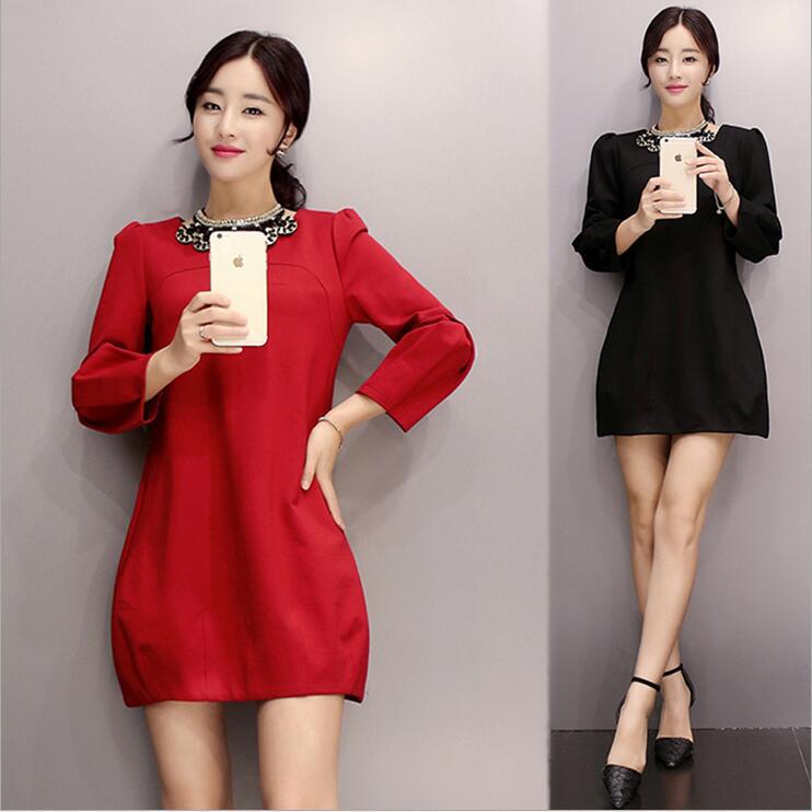 歐洲站2015秋季歐美新款時(shí)尚優(yōu)雅彈力修身腰燈籠裙直筒百搭連衣裙 /