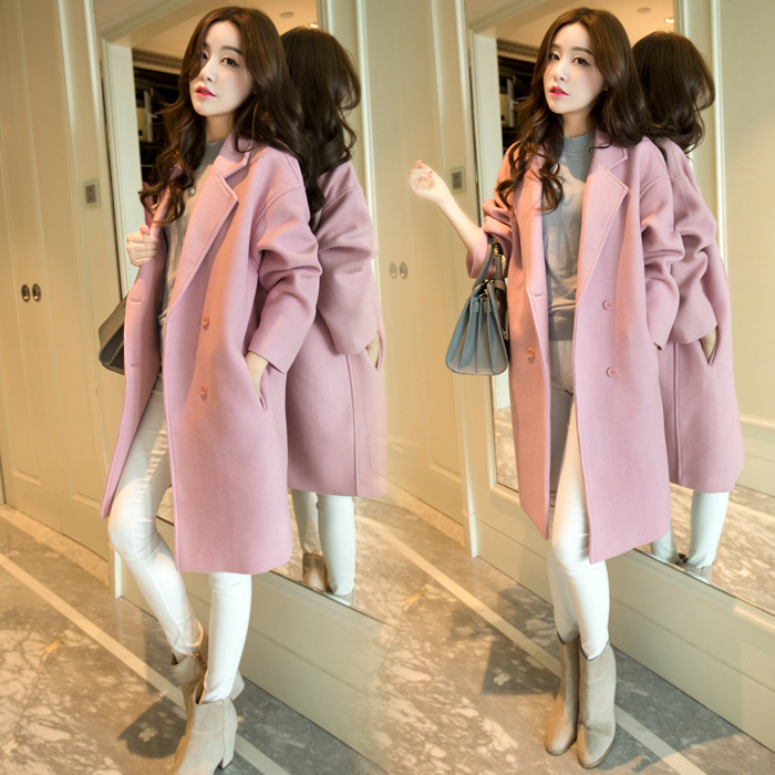 2015秋冬裝新品毛呢外套女裝加長款韓版修身韓國羊毛呢子大衣厚 /
