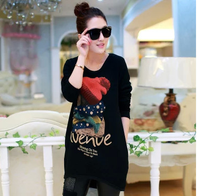 阿里巴巴批發(fā)網(wǎng)2015韓版印花學(xué)生衛(wèi)衣寬松長袖女秋冬長款長袖t恤 /