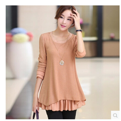 2015秋裝新款寬松大碼女裙韓版中長款打底衫雪紡衫 /