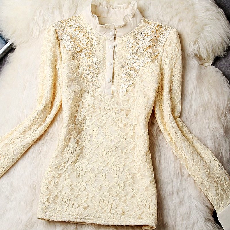 實(shí)拍2015新款蕾絲衫長袖秋冬裝女裝韓版修身荷葉邊高領(lǐng)加絨打底衫 /