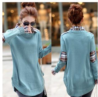2015春秋新款女裝韓版寬松顯瘦針織衫襯衫領(lǐng)假兩件中長(zhǎng)款毛衣外套 /