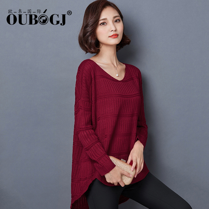 OUBOGJ長袖女針織衫2015新款秋裝韓版寬松毛衣外套V領(lǐng)套頭打底衫 /