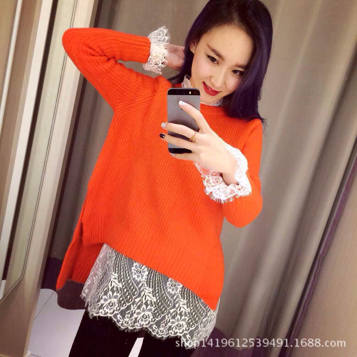 2015春季新款韓版開叉不規(guī)則寬松顯腿長糖果色針織毛衣女誠招代理 /