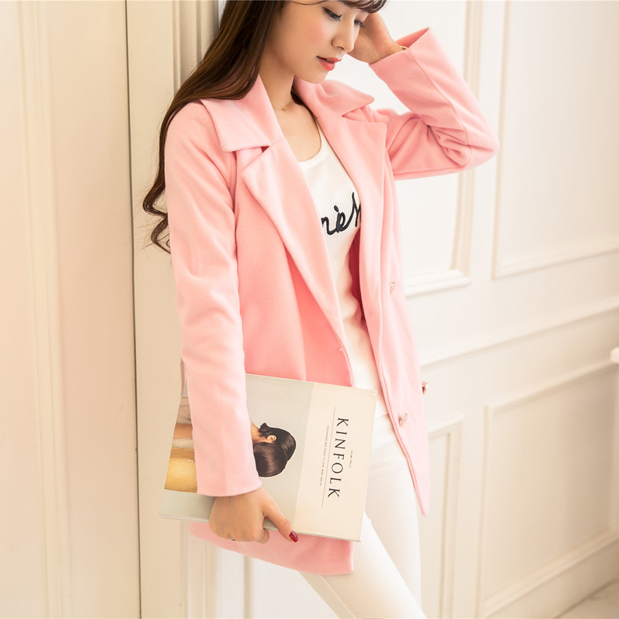 新品2015韓版秋冬中長款風(fēng)衣百搭修身純色紐扣呢子外套現(xiàn)貨實(shí)拍 /