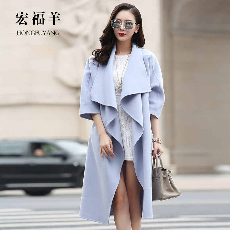 2015年秋冬新款 頂級手工雙面羊絨大衣長外套 高圓圓明星同款 /