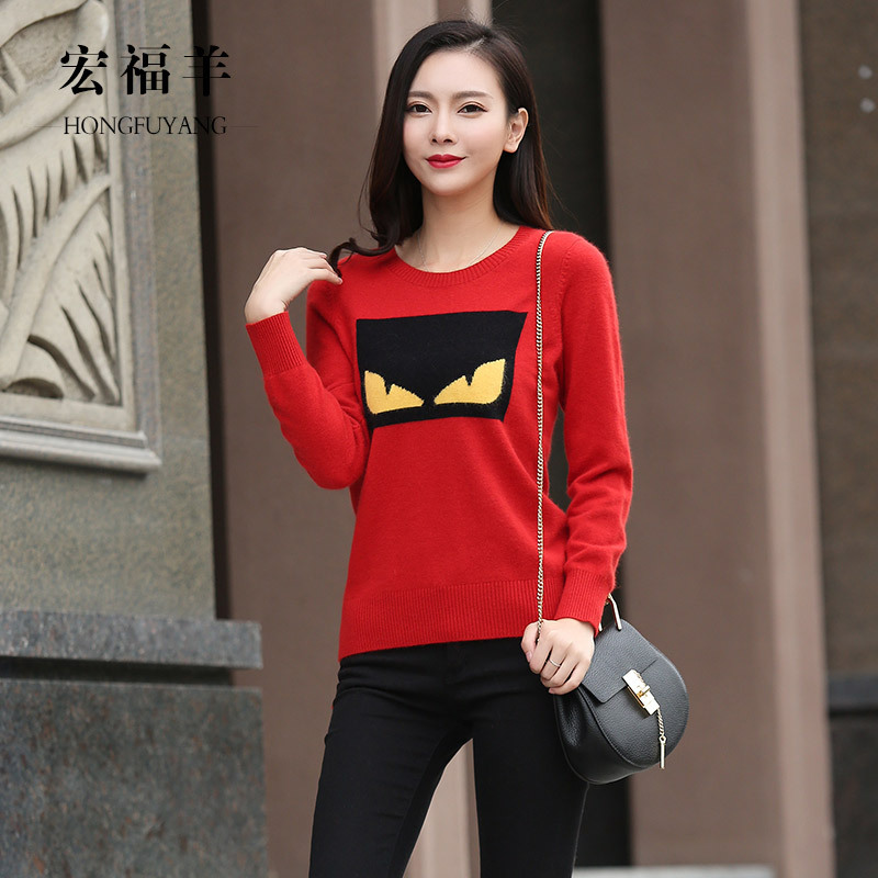 宏福羊2015秋冬裝新款女裝印花百搭毛衣針織衫女打底衫上衣 /