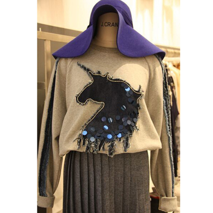 韓國東大門代購2015秋冬新款套頭衛(wèi)衣T恤女長袖休閑個性珠片上衣 /
