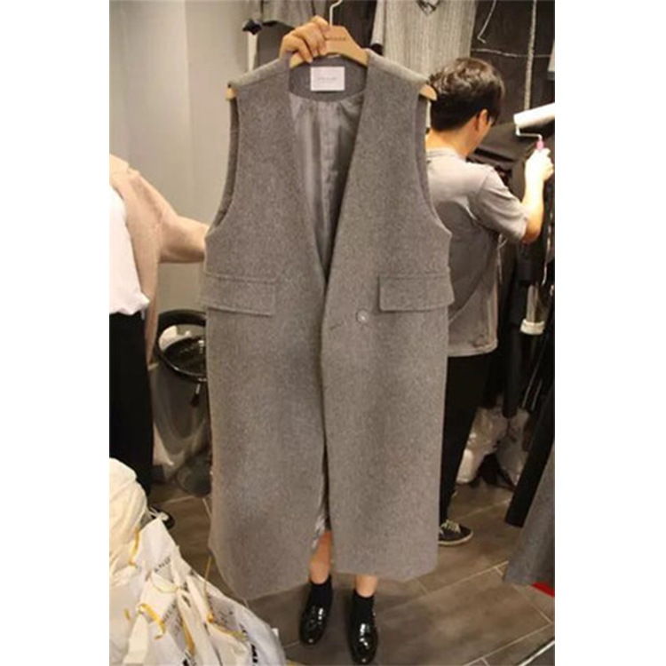 東大門代購2015冬裝中長款毛呢背心顯瘦外套馬甲女坎肩馬夾潮 /