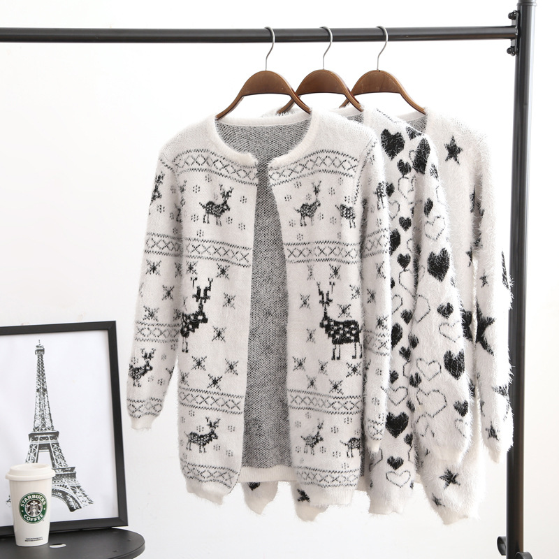 秋季新款 時(shí)尚馬海毛開衫毛衣 韓版女裝針織長袖毛衣 /