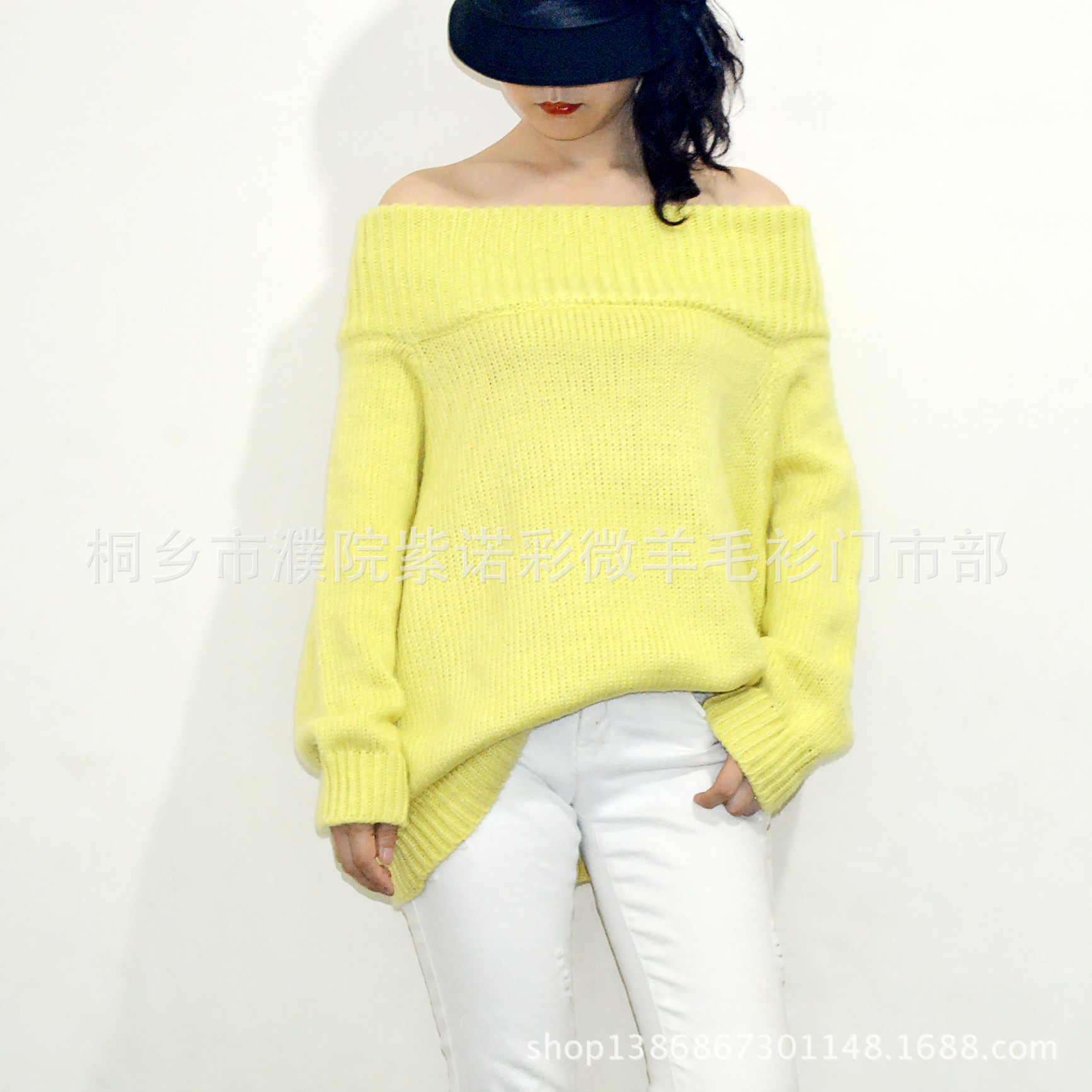 2015秋新品韓國一字領(lǐng)露肩百搭粗毛線針織名媛套頭毛衣女裝潮 /