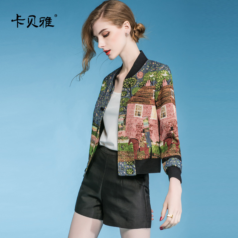 2015早秋新品女裝立領(lǐng)提花長袖暗扣口袋印花顯瘦女士外套5052 /