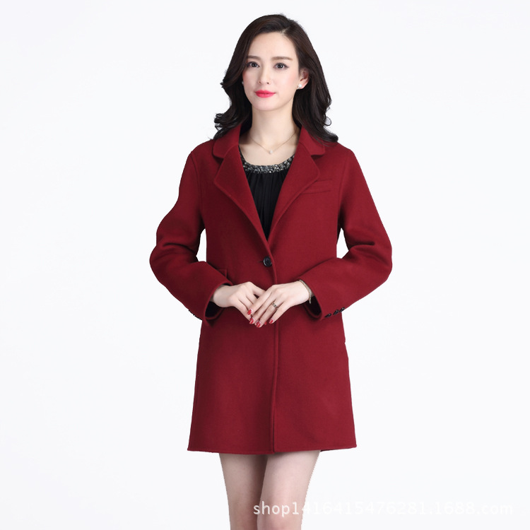 冬新款羊絨大衣女款韓版修身手工一粒扣拼接西裝領(lǐng)高端厚女式外套 /