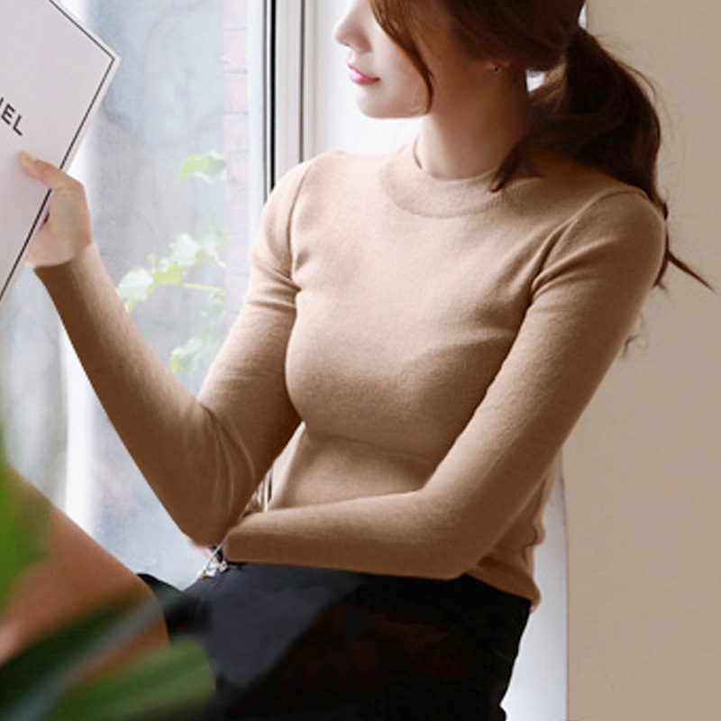 秋冬裝新款韓版半高圓領(lǐng)修身羊絨衫長(zhǎng)袖打底針織衫套頭緊身毛衣女 /