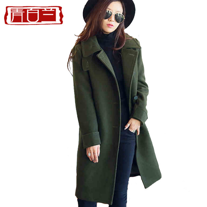 • 呢子大衣女2015新款秋冬裝歐美中長款大碼毛呢大衣外套女顯瘦 /