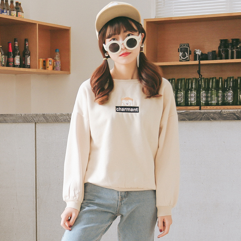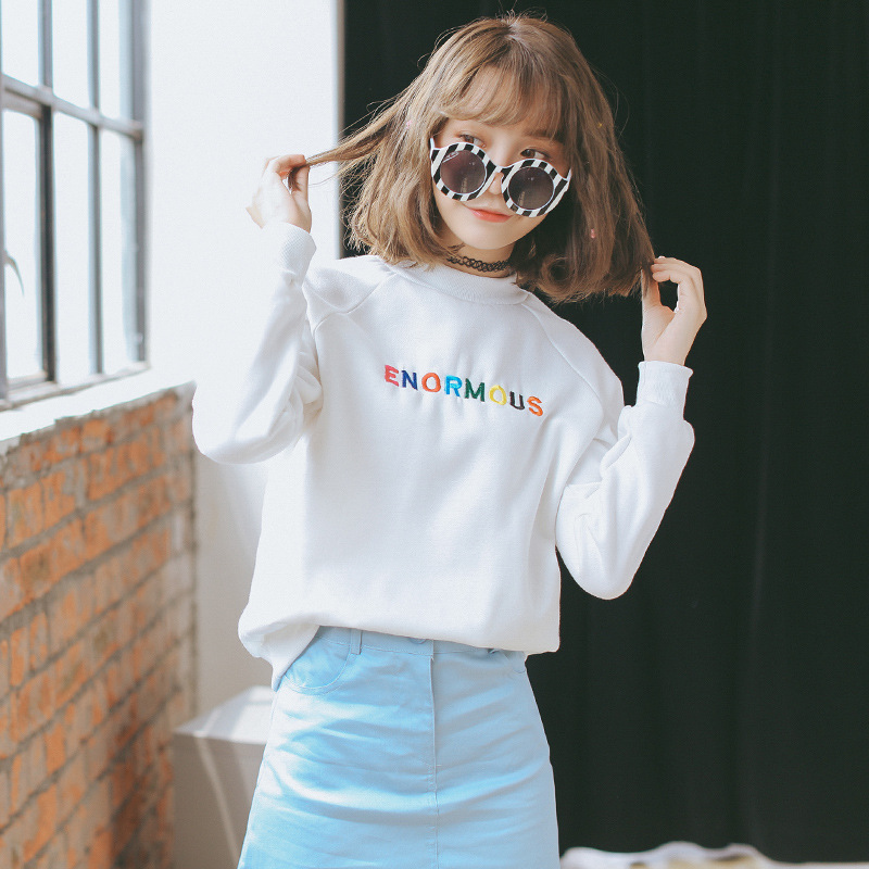 實拍 2015秋冬新款韓版彩色刺繡字母學院風寬松長袖百搭衛(wèi)衣女353 /