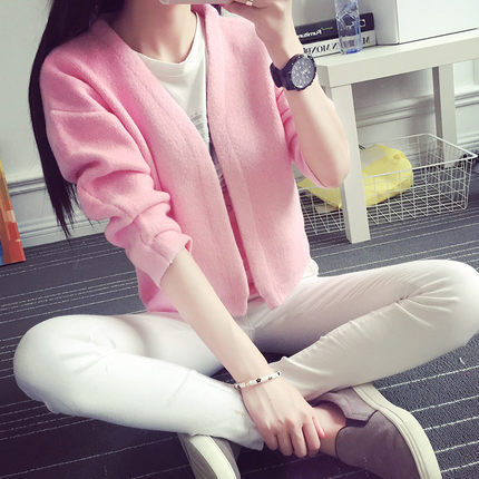 東大門韓版爆款女式針織開衫新款純色寬松毛衣女 秋季外套批發(fā) /