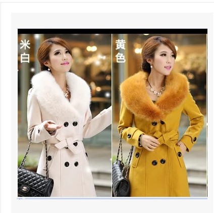 • 毛呢外套女中長(zhǎng)款2015冬裝韓版女裝大毛領(lǐng)呢子大衣雙排扣女外套潮 /