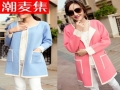 2015秋冬新款羊絨毛呢大衣女士針織開衫外套中長款貂絨大衣025 /