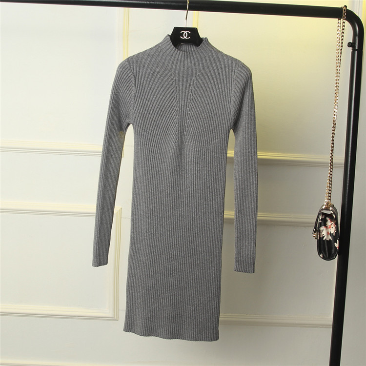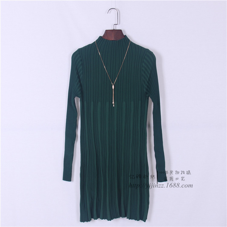 秋冬新款加厚半高領(lǐng)毛衣女套頭修身包臀中長款螺紋針織打底連衣裙 /