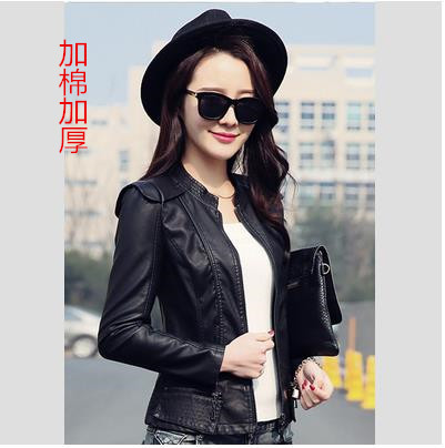 加棉新款機車小皮衣女春秋裝短款修身Pu夾克韓版西裝外套 /