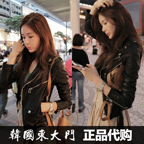 2015新款秋裝韓版二層真皮衣女短款修身機車翻領(lǐng)夾克小外套 /