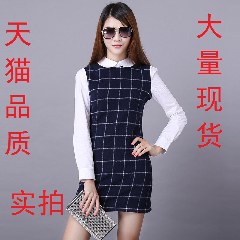 2015秋裝新款韓版女裝 娃娃領(lǐng)假兩件套連衣裙 女 /