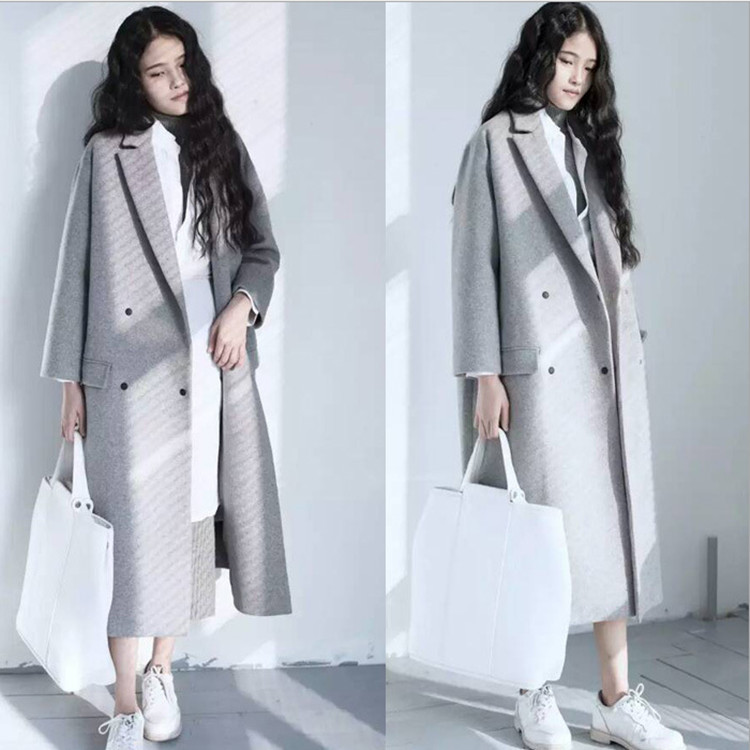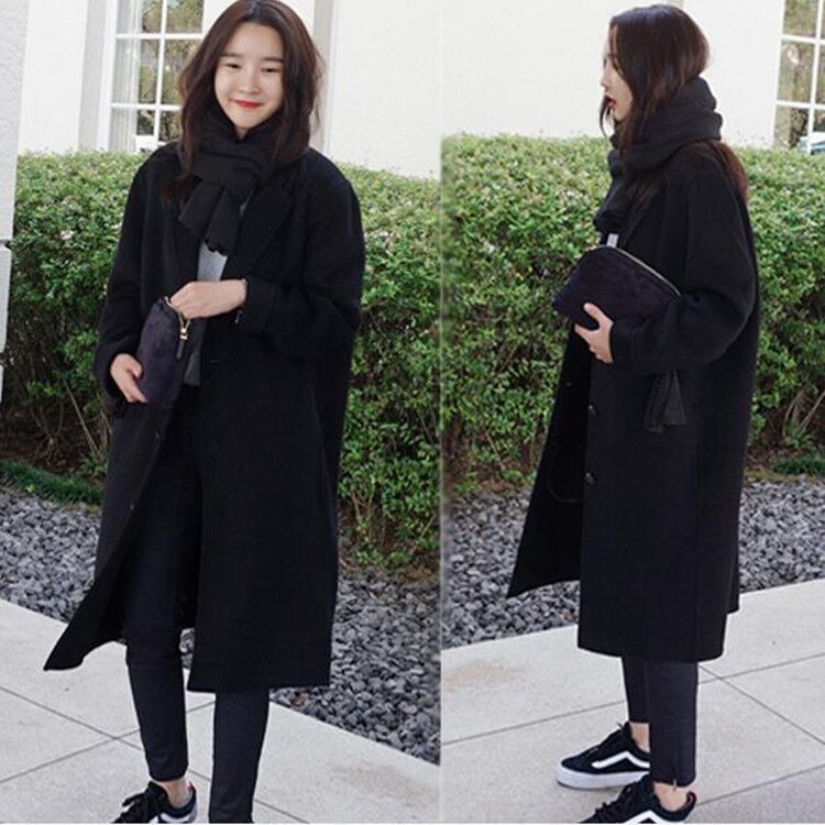 加棉版 新款羊毛呢外套女 英倫風寬松大碼長款加厚呢子大衣 /