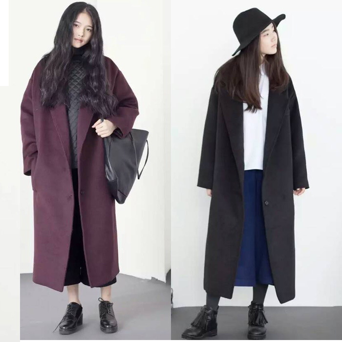 秋冬oversize復古寬松長款酒紅色羊毛呢外套繭型呢子大衣現(xiàn)貨 /