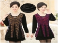 秋冬季中老年女裝加絨加厚T恤中年女人加大加長加胖媽媽裝打底衫 /