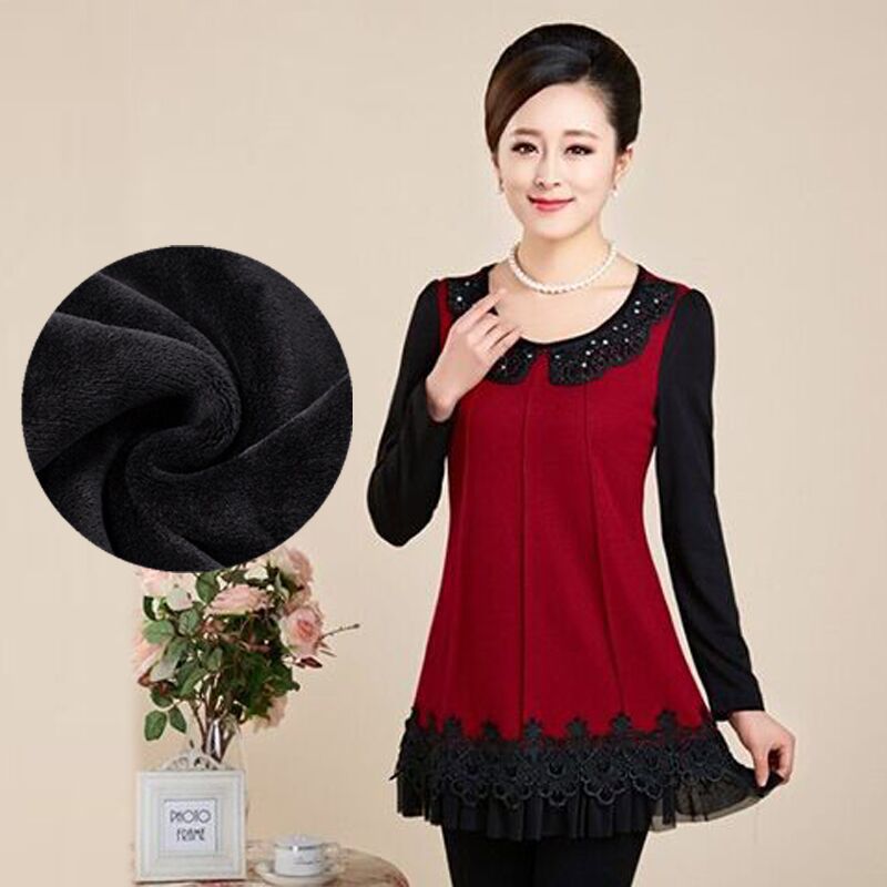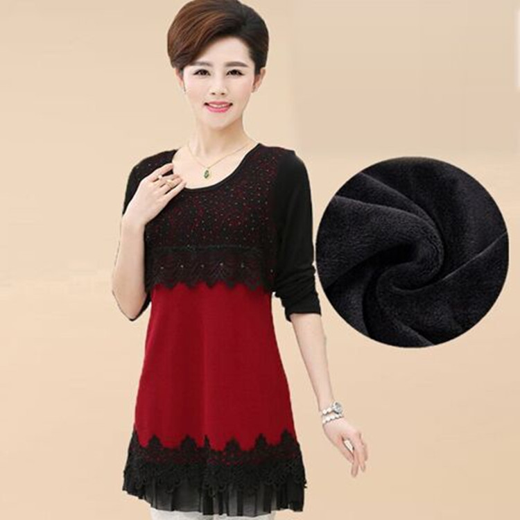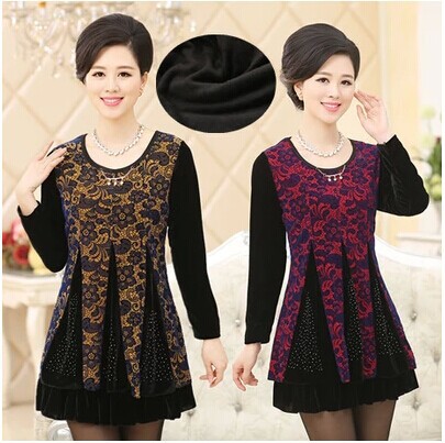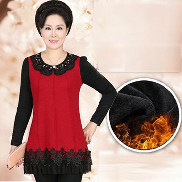 秋冬裝新品媽媽裝中長款保暖加絨加厚打底衫中老年女裝大碼體恤衫 /