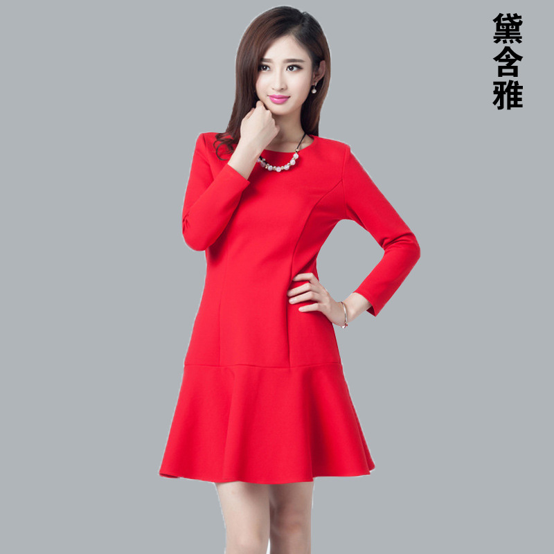 歐洲站2015秋冬新款大碼長袖連衣裙女 加絨中長款修身圓領(lǐng)打底a裙 /