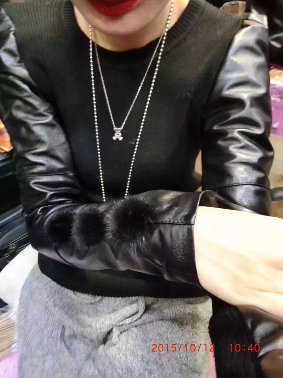 套頭真皮皮袖打底衫2015秋冬新款配貂毛綿羊皮針織衫小衫女歐洲站 /