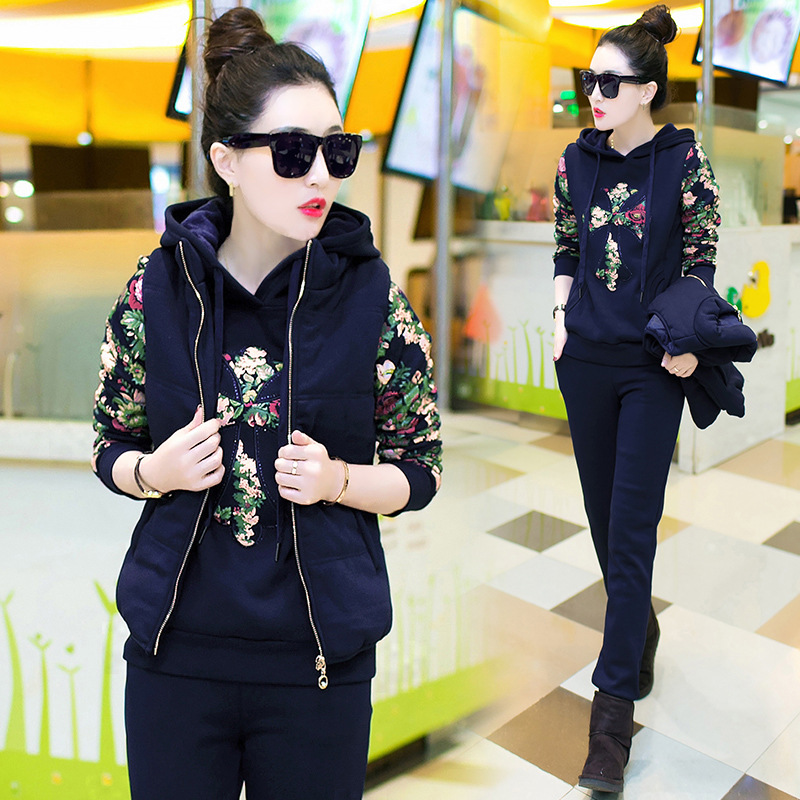 2015新款秋冬季女士衛(wèi)衣加絨加厚三件套學(xué)生大碼休閑運(yùn)動(dòng)套裝女 /