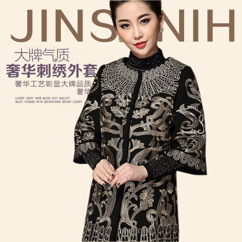簡介: 貨源類別現(xiàn)貨 產地深圳 款式類別女式外套 風格韓版 適合季節(jié)秋季 圖案形狀 流行元素刺繡/繡花,亮絲 適用年齡段45-55 主圖來源實拍有模特 上市年份/季節(jié)2014秋季 面料名稱混紡 主面料成分氨綸 主面料成分的含量30(%) 顏色黑色,紅色,紅色九分袖含羊毛,黑色九分袖含羊毛價格,紅色含羊毛七分袖,黑色含羊毛七分袖 尺碼S,M,L,XL,XXL,XXXL,4XL,5XL