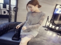 2015秋冬裝新款貂絨蕾絲打底衫中長款 圓領(lǐng)套頭修身女裝上衣 /