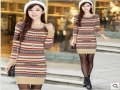2015秋冬新品 復(fù)古風(fēng)圓領(lǐng)毛衣女 修身打底厚長款毛衣裙 /