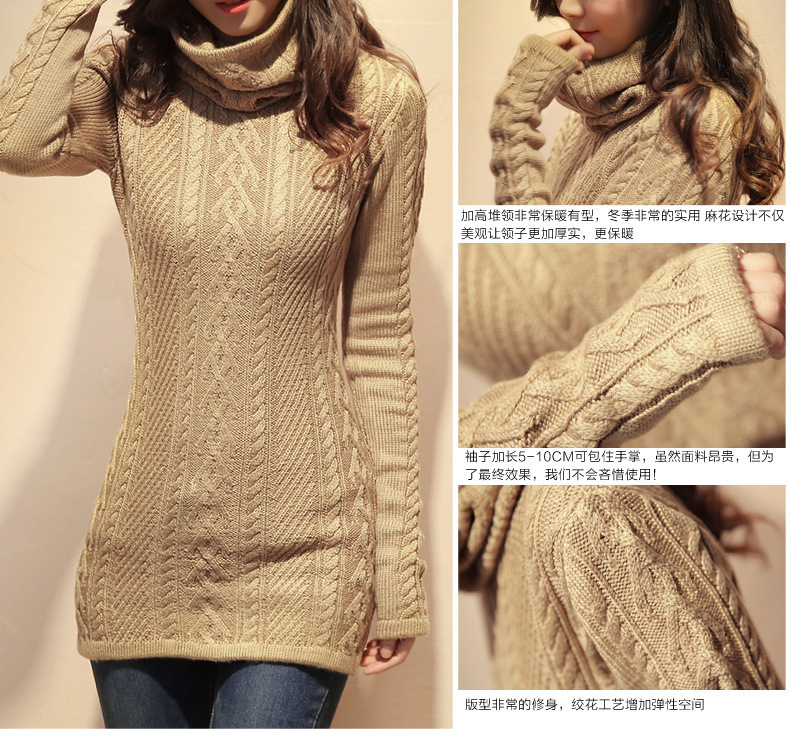 2015秋冬新款 中長款麻花紋高領(lǐng)打底毛衣女式針織衫廠家特價批發(fā) /