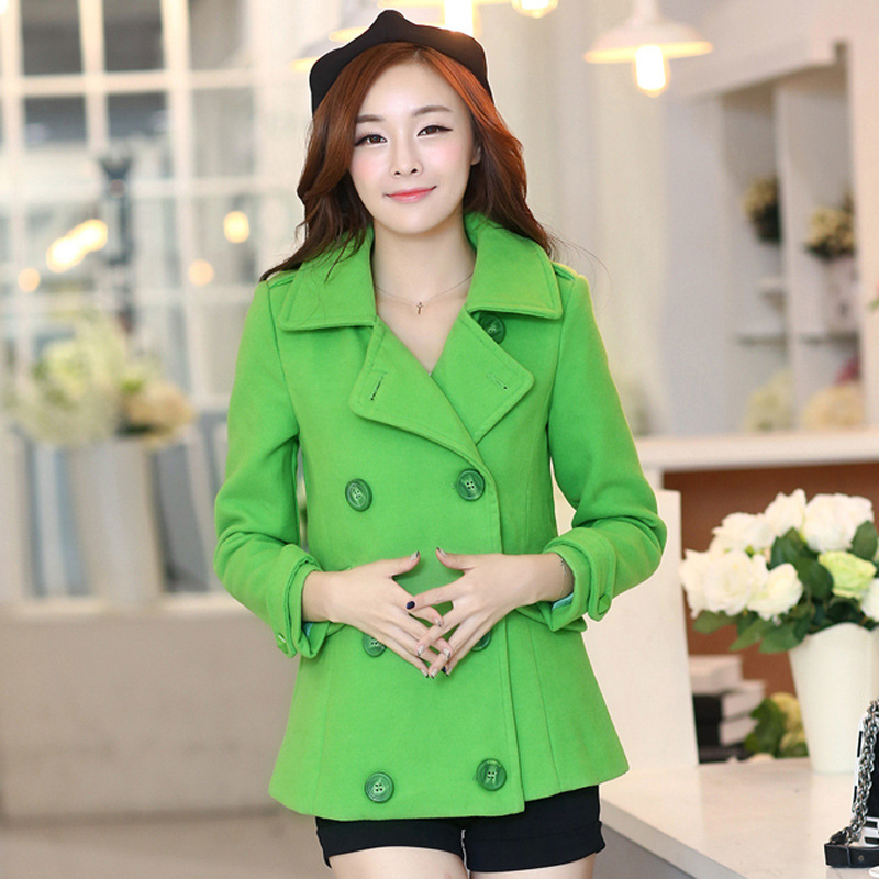 秋冬新款韓國代購中長款大碼毛呢外套雙排扣加厚呢子大衣女 /