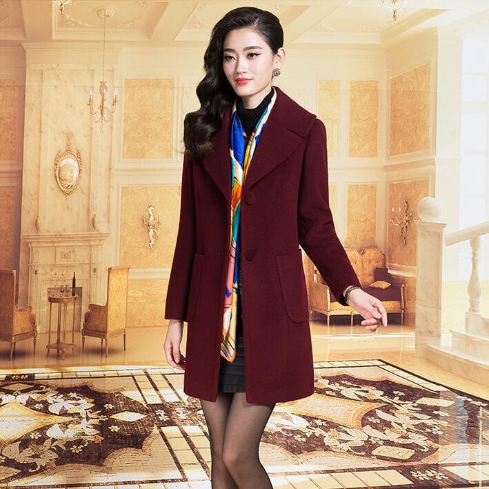 優(yōu)雅女式毛呢外套高檔OL氣質(zhì)秋冬新款中長款長袖純色羊毛大衣 /