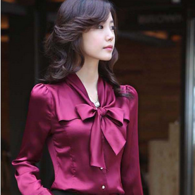 雪紡衫2015新款秋裝蝴蝶結(jié)長(zhǎng)袖襯衫日韓大碼上衣女式襯衣 批發(fā) /