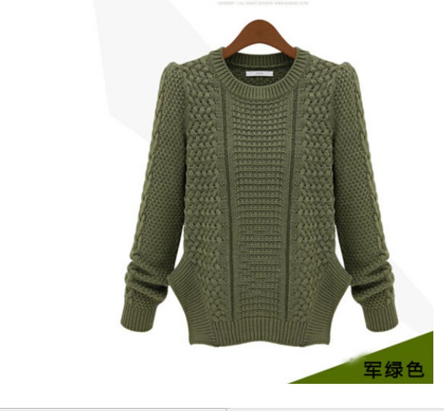 2015秋冬外貿(mào)新款麻花下擺開叉修身長(zhǎng)袖針織衫毛衣 /