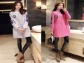 廠家直銷實(shí)拍呢子大衣秋冬裝新品中長款圓領(lǐng)卡通圖案毛呢外套 /